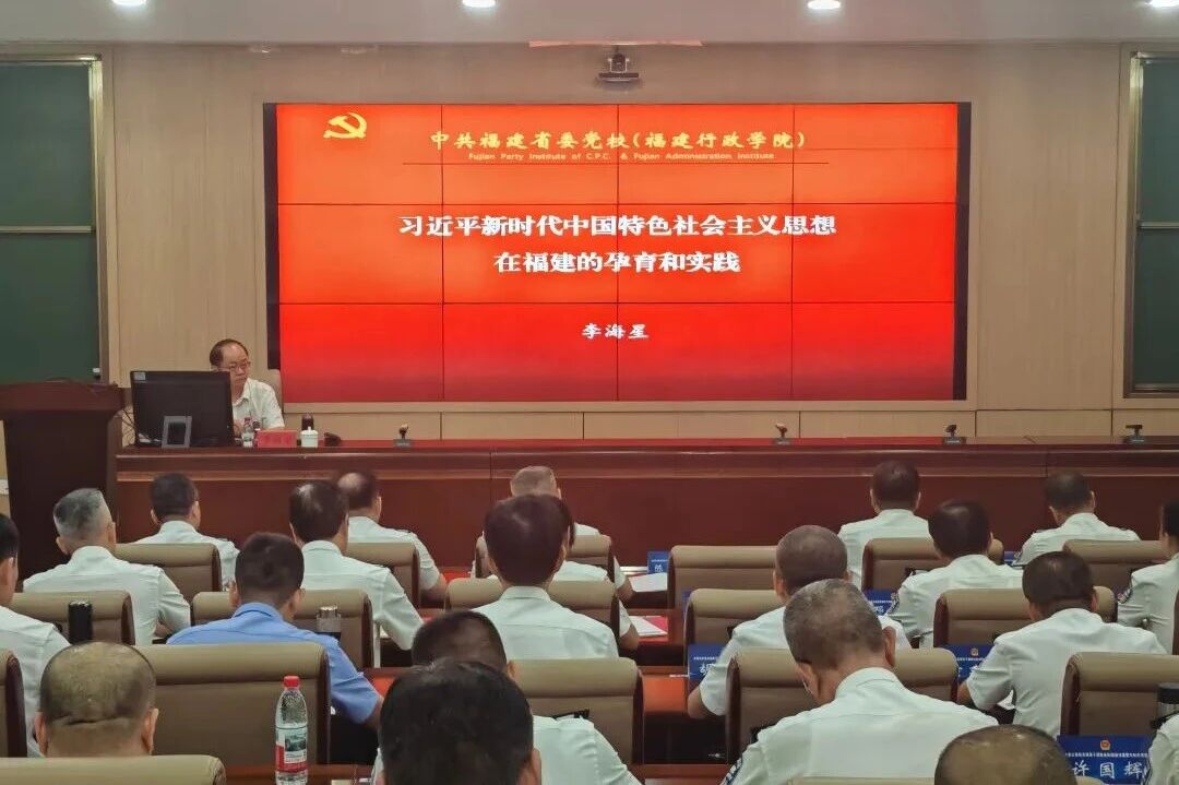 本期示范班突出政治建警,紧扣学习贯彻《公安机关政治工作条令》主线,设置政治理论、政工业务、作风训练、现场教学、交流研讨五大板块,探索分专题政治轮训模式提升培训精准度与实效性。培训班以学习贯彻习近平新时代中国特色社会主义思想为第一课,邀请福建省委党校、厦门大学、福建师范大学等高校专家学者与部队政工领导,讲授习近平新时代中国特色社会主义思想在福建的孕育与实践、传承弘扬新时代“漳州110”先进事迹、军队政治工作经验、心理赋能工作等专题课程,内容理论扎实、案例鲜活、数据详实,课堂互动热烈、反响良好。