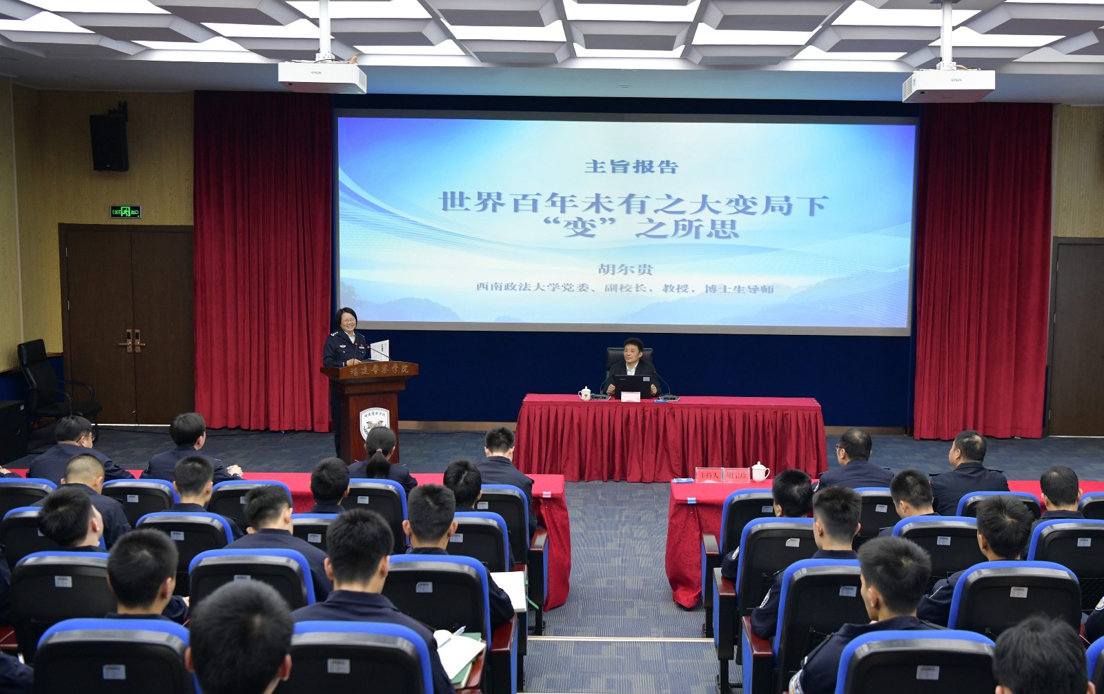 11月5日,学院邀请西南政法大学党委常委、副校长、博士生导师胡尔贵教授到校开设“世界百年未有之大变局下‘变’之所思”专题讲座。讲座由学院院长胡宝珍主持,侦查系师生代表参加。