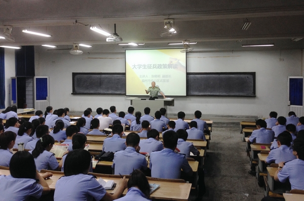 2014年征兵工作已全面展开,为让2014届毕业生能了解大学生征兵政策,6月16日晚,仓山区武装部张晓明副部长来我校为全体毕业生作征兵政策宣讲,鼓励同学们响应祖国号召,投身国防事业。