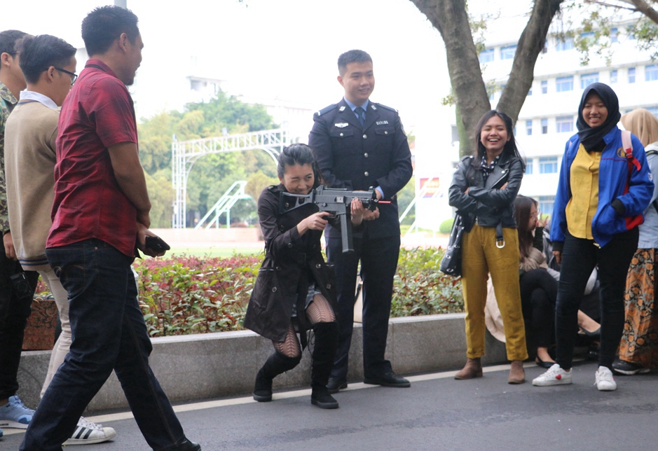 活动团一行观看了我院仪仗队分列式表演、学生警体和文艺表演,参观了学院枪械展览馆、射击教学、实训楼、忠诚教育展览馆、文化艺术展览馆、智慧教室等,并在行政楼前合影留念。本次交流活动丰富精彩而又具警院特色,给活动团成员留下了深刻的印象。
